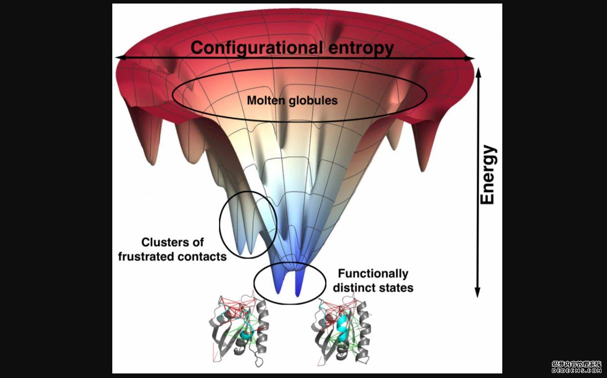 “这种沮丧的概念在我们研究蛋白质折叠的一开始就存在,”Wolynes说。“当我们将其应用于真正的蛋白质分子时,我们发现了一些例子,其中折叠机制违背了我们从完美漏斗中预测的结果。然后我们发现这些与漏斗图的偏差发生在蛋白质的位置,事实上,有些令人沮丧。