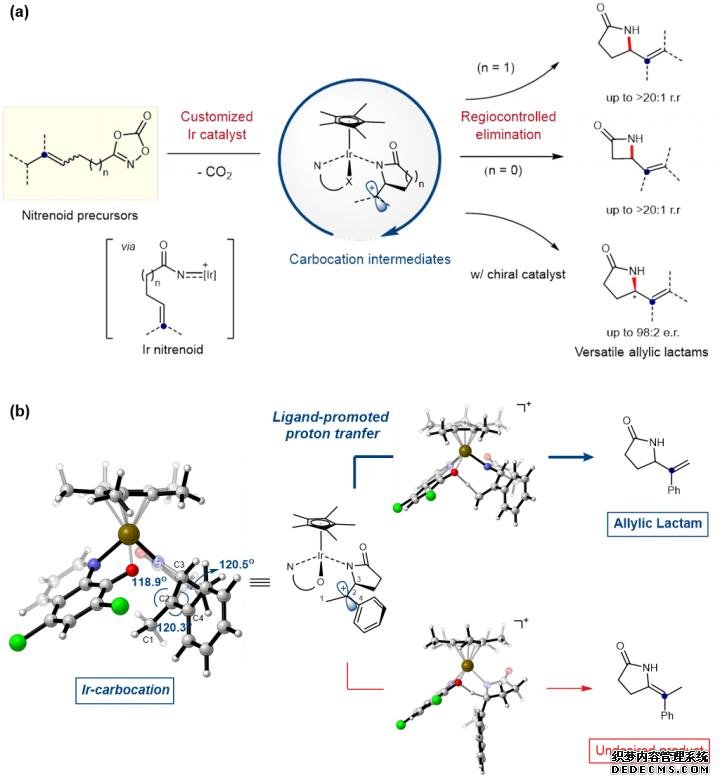 传统的催化剂大多局限于生成碳正离子中间体,不影响反应的区域选择性。因此,通常需要添加昂贵的消除途径来去除不需要的产品。IBS的研究人员通过开发一种多方面的催化系统来挑战这一问题。2018年,他们独立开发了一种新型铱催化剂,可将碳氢化合物转化为多功能γ-内酰胺,这一技术壮举发表在《科学》杂志上。这种催化剂被进一步用于碳正离子中间体的生成和选择性转化。成功的关键在于定制化的催化剂暂时产生Ir-nitrenoid种,其亲电性足够高,可以接触碳正离子种,并将键插入碳-碳双键中。
