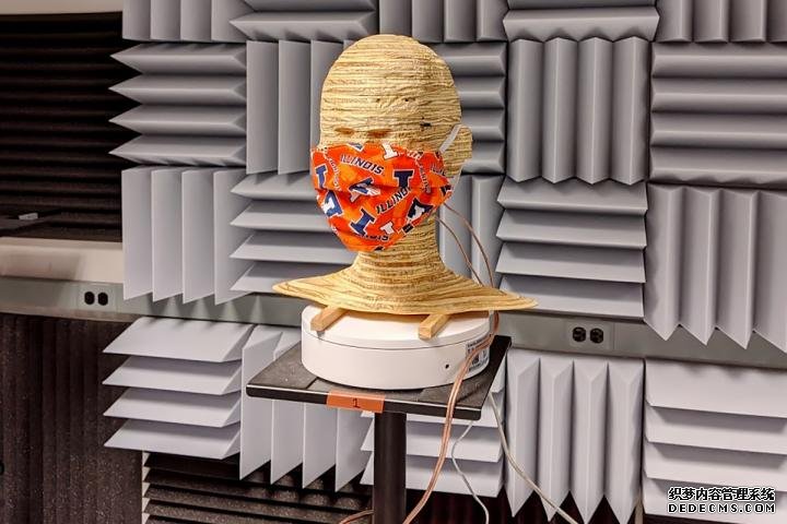 “我们把不同的面具戴在头部形状的扬声器上,每次测试都播放相同的声音,”科里说。“我们还把扬声器放在一个转盘上,为我们的数据添加方向组件。”