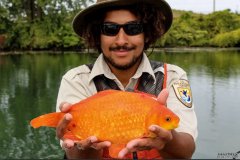 在野外非法放养的金鱼可以长得比关在水族馆里的金鱼大得多。 资料来源:布法罗尼亚加拉水管员提供 最近在纽约尼亚加拉河捕获了一条巨...