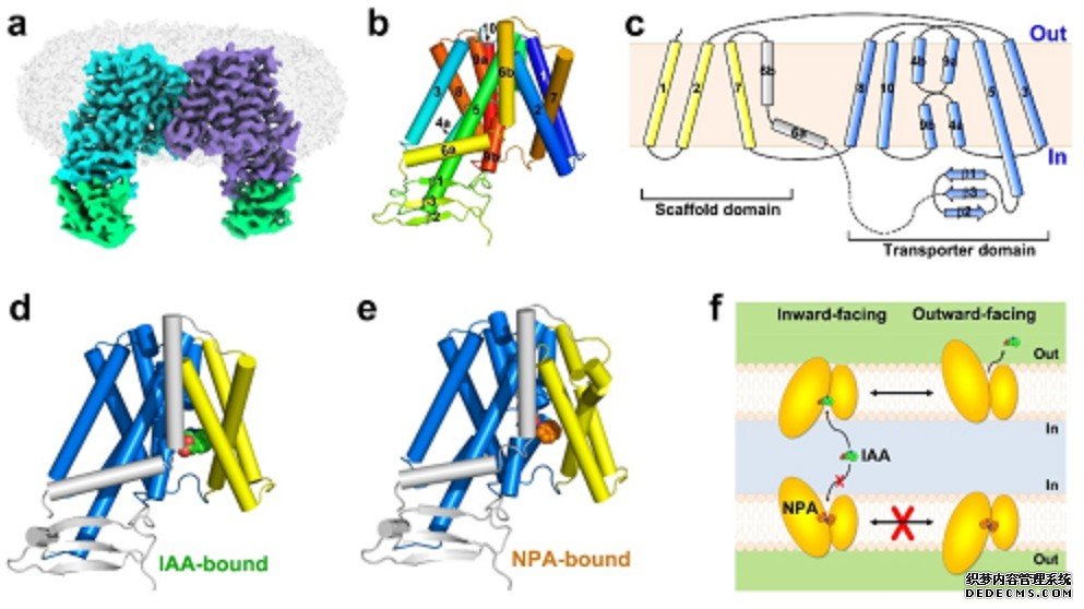 特定PIN家族成员在细胞质膜上具有不对称分布的特点,它们的分布位置决定了生长素“搬运”的方向。但是由于缺乏精细的三维结构,PIN家族蛋白特异性识别、转运生长素的机制一直未知。